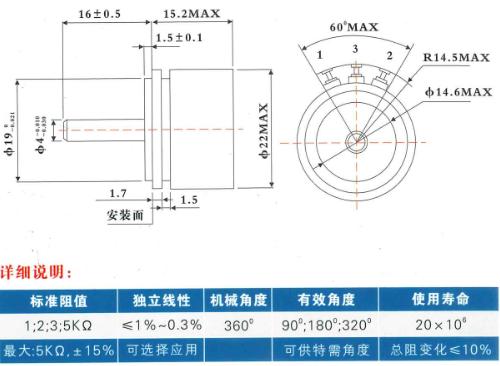 WDG-系列角度传感器,采用模压式导电塑料基体,它以可靠性好、使用寿命长等特性广泛应用于军事、航空、汽车、医药、测量、机器人、原子能当然更适用于工业领域应用的位移传感器。