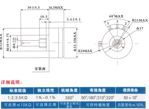 WDG-系列角度传感器,采用模压式导电塑料基体,它以可靠性好、使用寿命长等特性广泛应用于军事、航空、汽车、医药、测量、机器人、原子能当然更适用于工业领域应用的位移传感器。